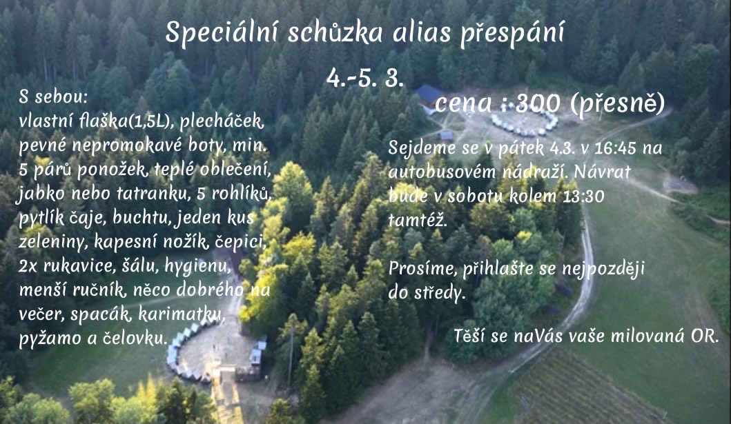 tento pátek se koná přespání na srubu. Více info je v aktualitách :-)